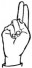 На ћирилици написано САША КЉУКОВНИЦА састоји се из 14 слова [?]. Исписано ћириличном једноручном азбуком за глувонеме: